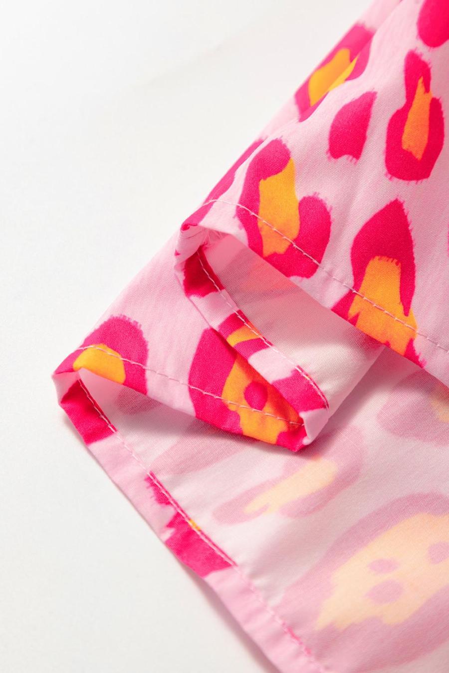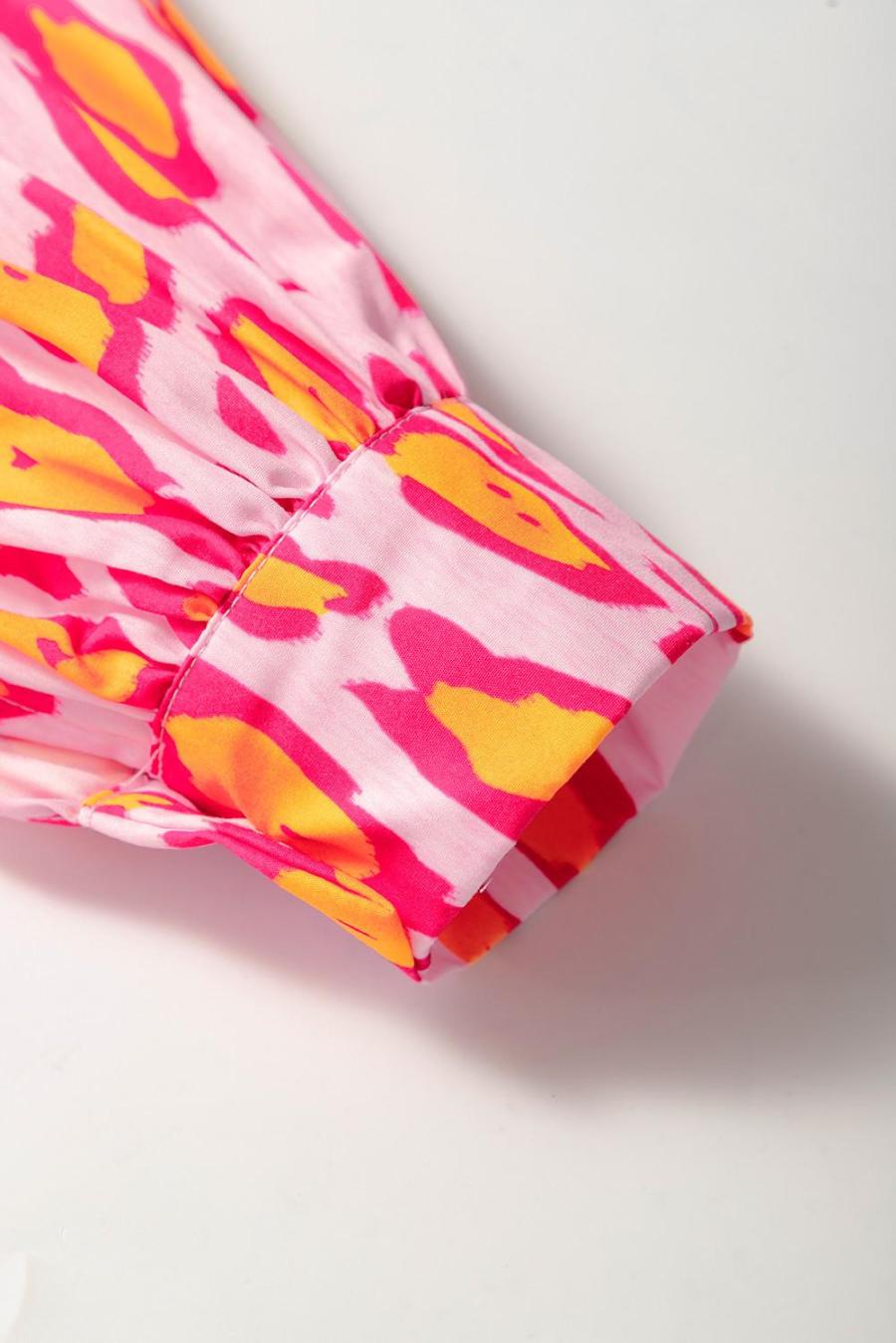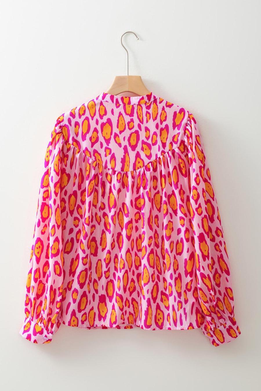 Women Blouses | Rose Red Leopard Print Balloon Sleeve Loose Blouse