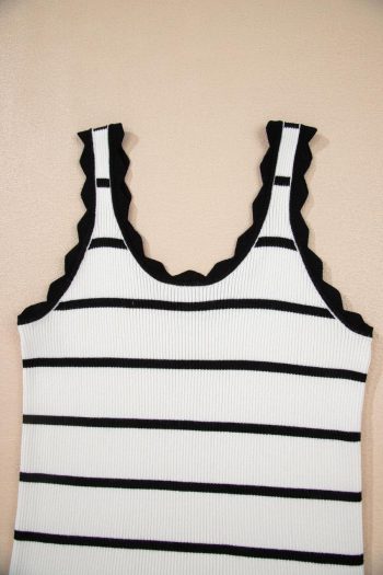 - Stand Out In Style With Our Tank Top Featuring A Charming Scalloped Edge Detail For A Touch Of Elegance.
