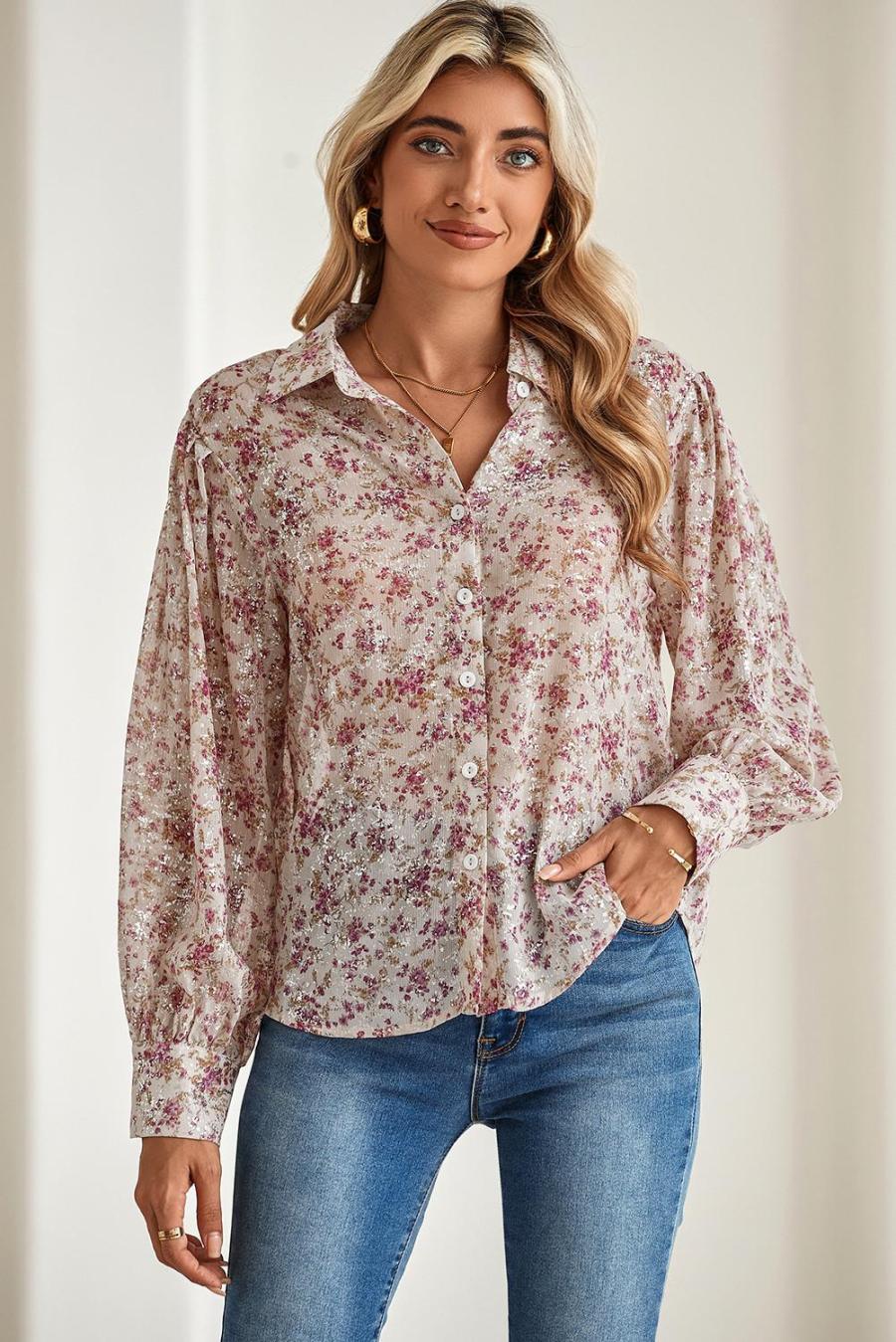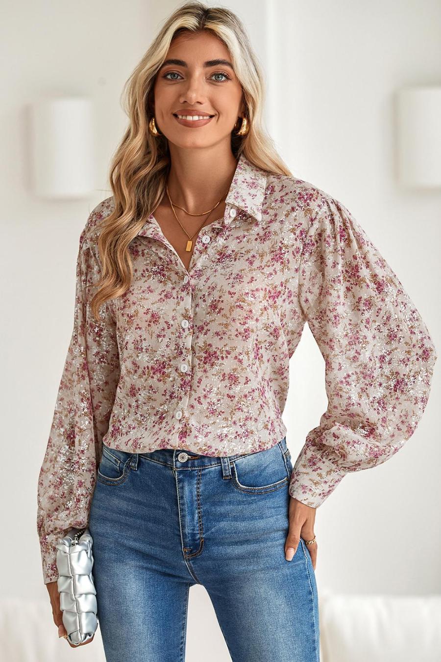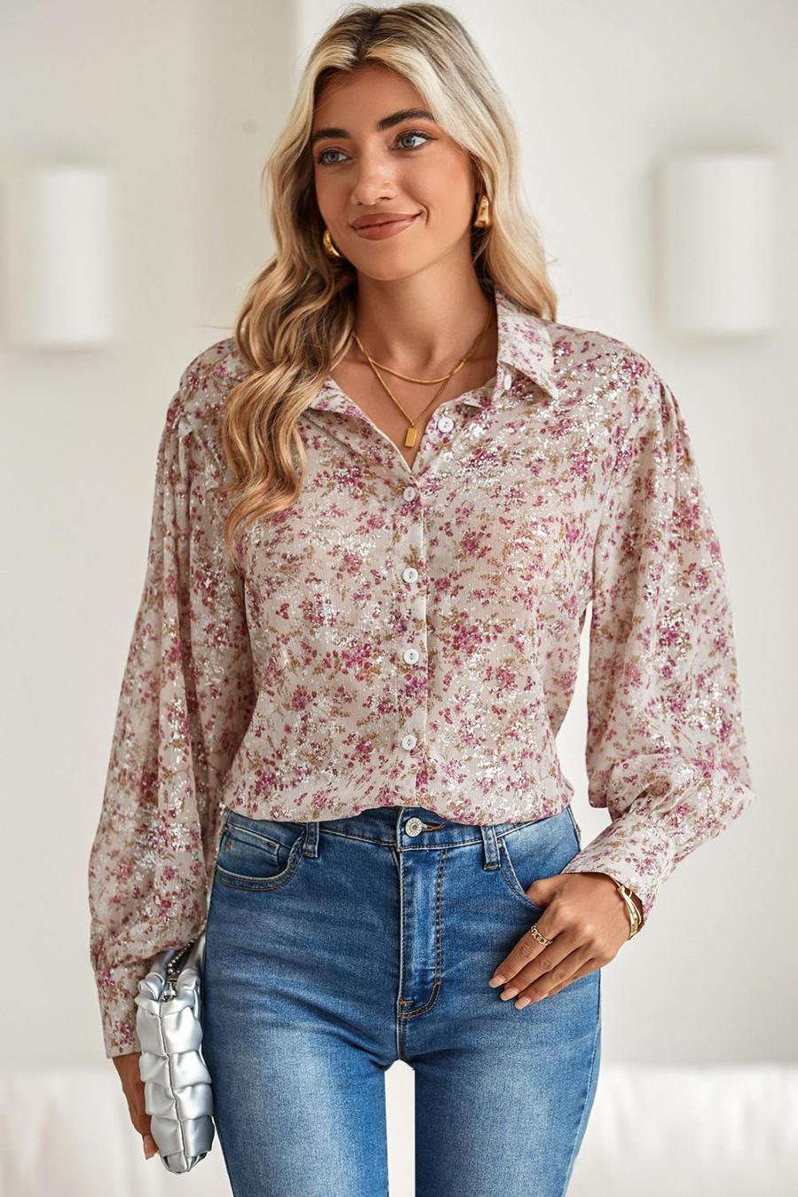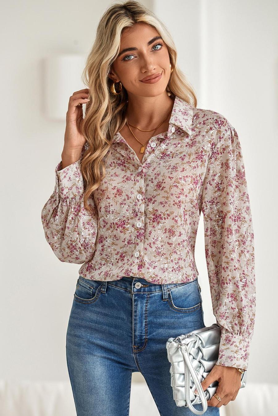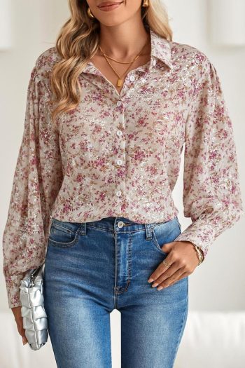 | Tag | Color Pink,Pattern Floral,Style Boho,Pattern Alloverprint,Style Elegant,Occasion Daily,Season Spring&Amp;Autumn,Sale Clearance,Tops Sale | ||