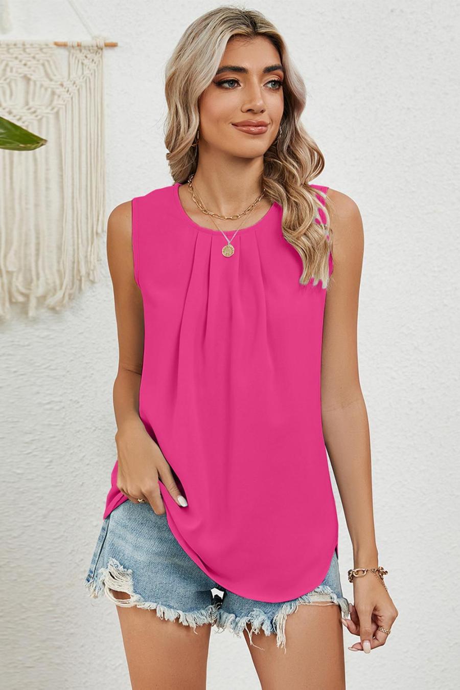 - The Round Neck Design Adds A Touch Of Elegance To This Sleeveless Top, Making It A Versatile Piece For Your Wardrobe.