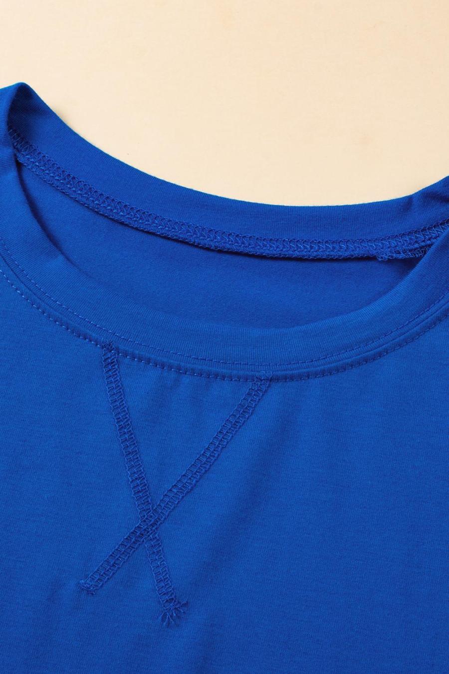 Women T Shirts | Dark Blue Solid Color Side Slit Tunic Top