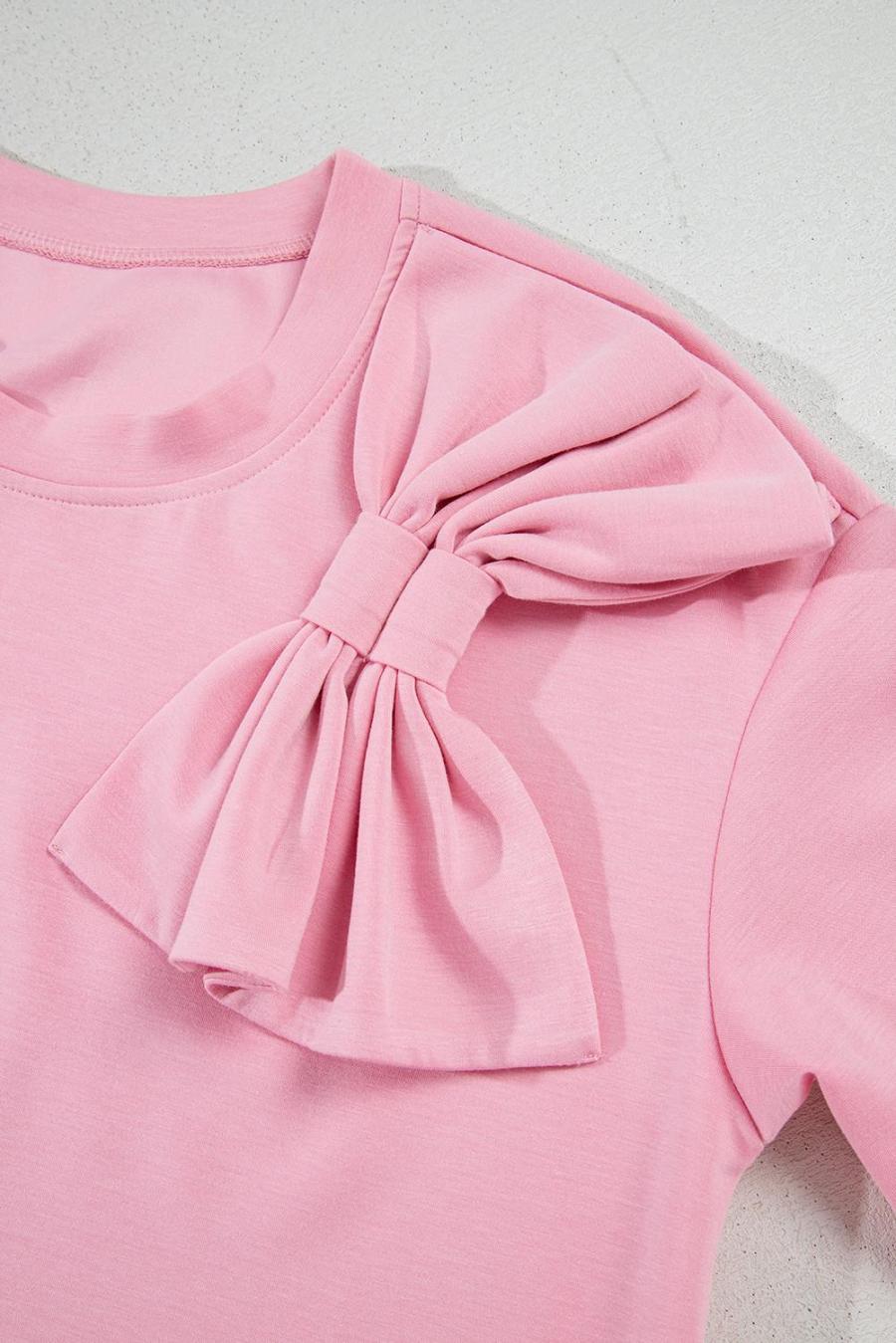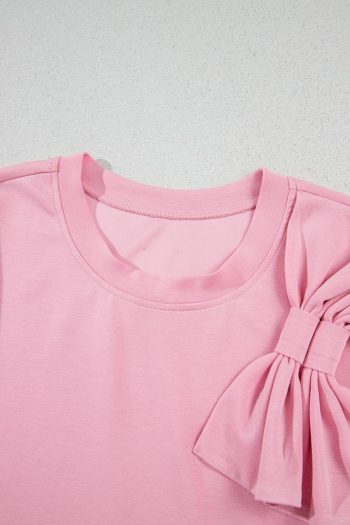 Women T Shirts | Pink Bow Applique Solid Color Sweet T-Shirt