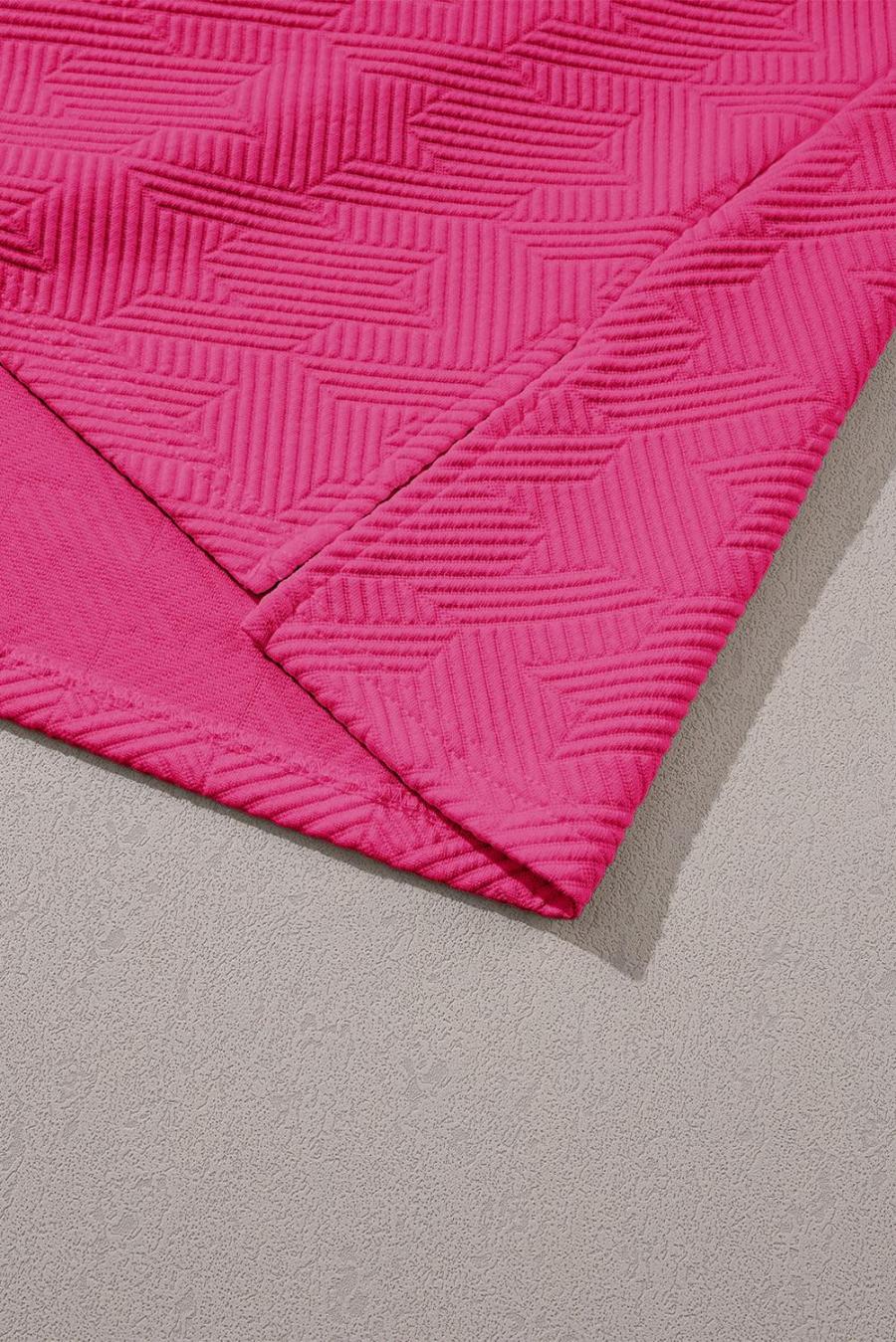Women T Shirts | Rose Red Textured Collared V Neck Slit Hem T Shirt