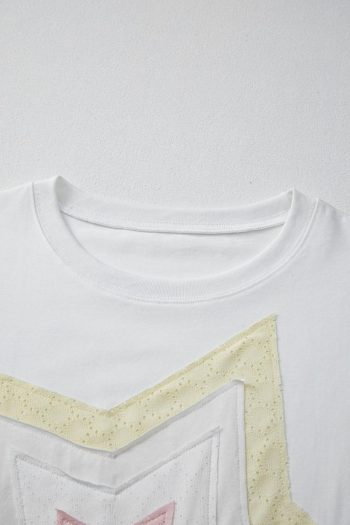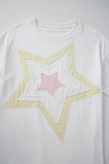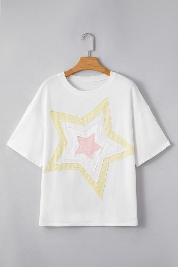 Women T Shirts | White Star Patched Drop Shoulder Half Sleeve Loose Tee